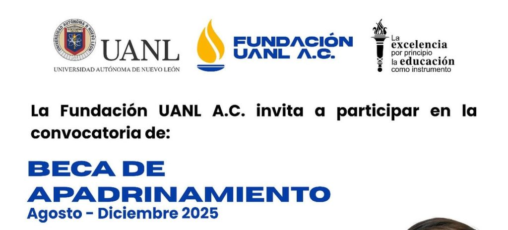 Por: Karyme Galván Fecha: 10 de septiembre de 2025 La Fundación UANL A.C. te invita a participar en la convocatoria de Beca de Apadrinamiento. ¡Revisa los requisitos y postúlate! Requisitos: Residir en el municipio de Santiago, Nuevo León. Estudiar en cualquier dependencia de la UANL, fuera de Santiago, Nuevo León. Cursar el […]