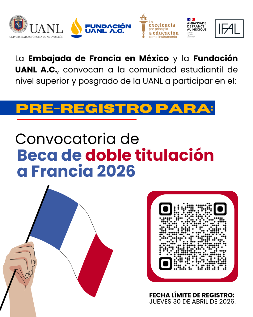 La Fundación UANL te invita a postularte a la Beca de Doble Titulación a Francia. 🇫🇷